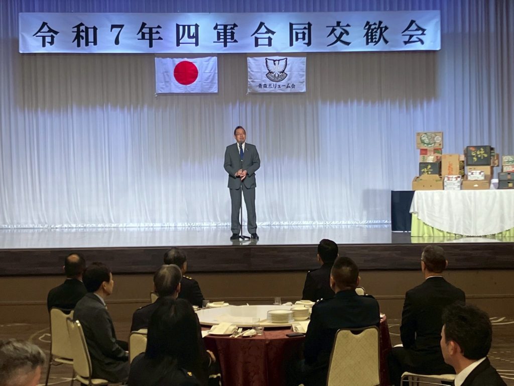 まず、若芽保育園本園のお遊戯会(写真①)、次に、青森ボリューム会(自衛隊を応援する有志団体)の自衛隊・米軍との交歓会(写真②)、ついで、国際連合協会青森支部と新城健康づくり応援隊の合同忘年会(写真③)、さらに青森市母子寡婦福祉会主催のクリスマス会(写真④)、日曜日の今日は西秀記青森市長の市政報告会(写真⑤、⑥)にてご挨拶させていただきました。