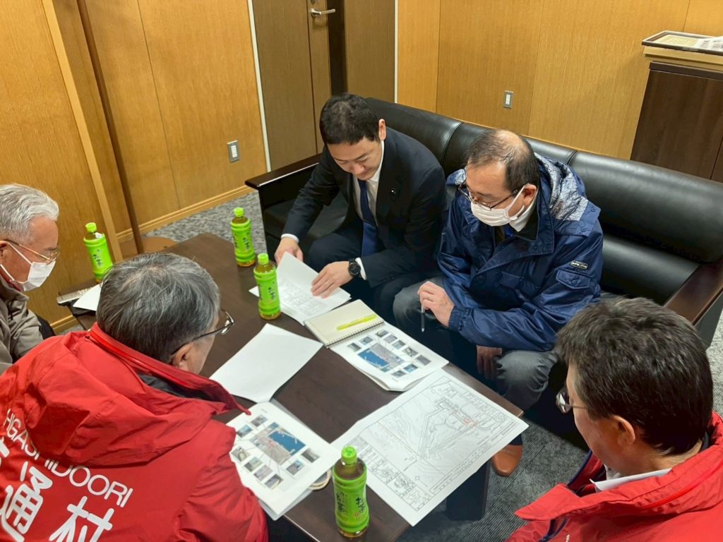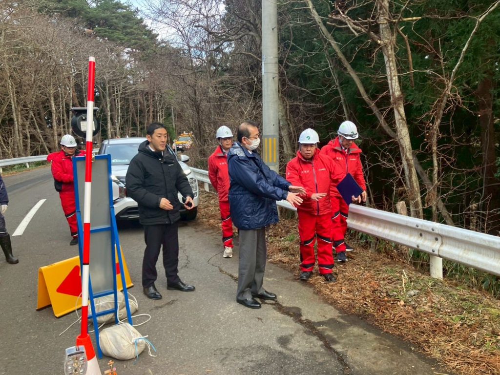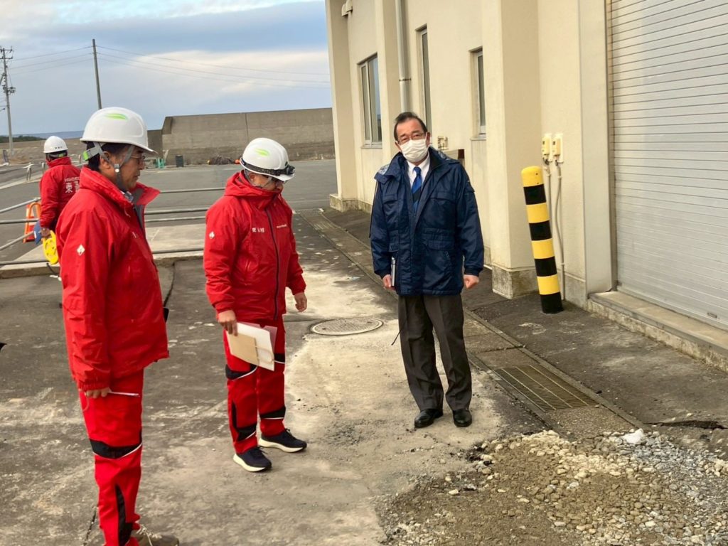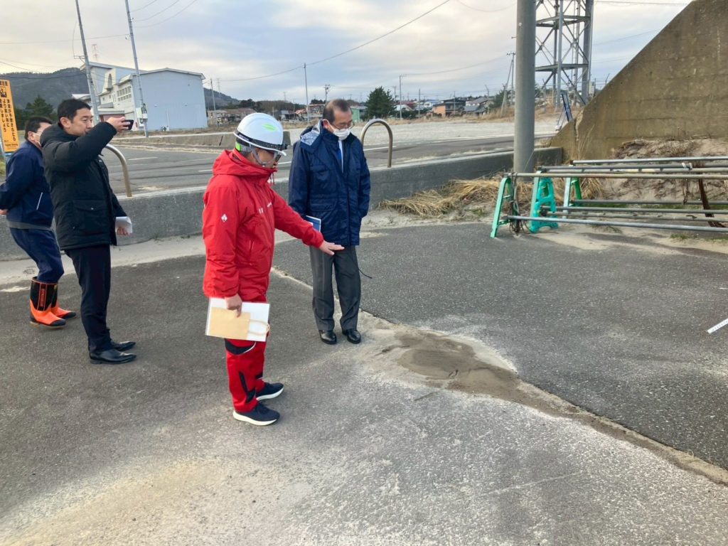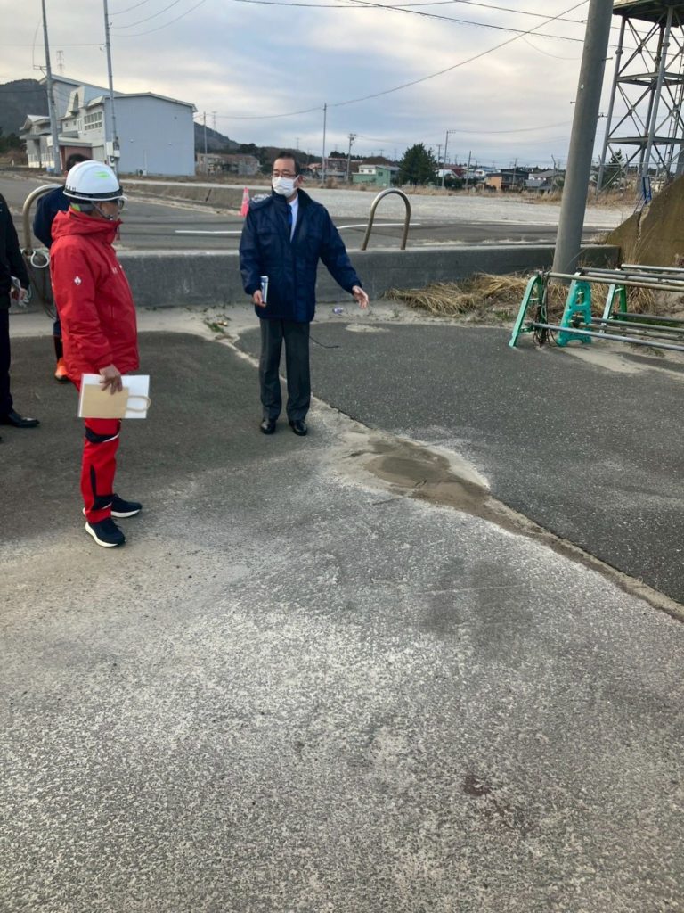 8日に発生した地震により、小田野沢漁港、村道、農産物加工センターに被害が出たとのことで畑中村長の案内で現地調査いたしました。