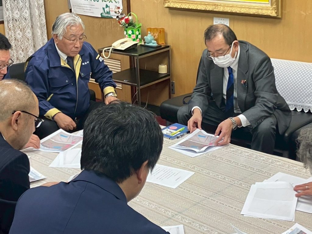 横浜町では、日没のため現地は見られませんでしたが石橋町長さんの説明を役場でお聞きしました。