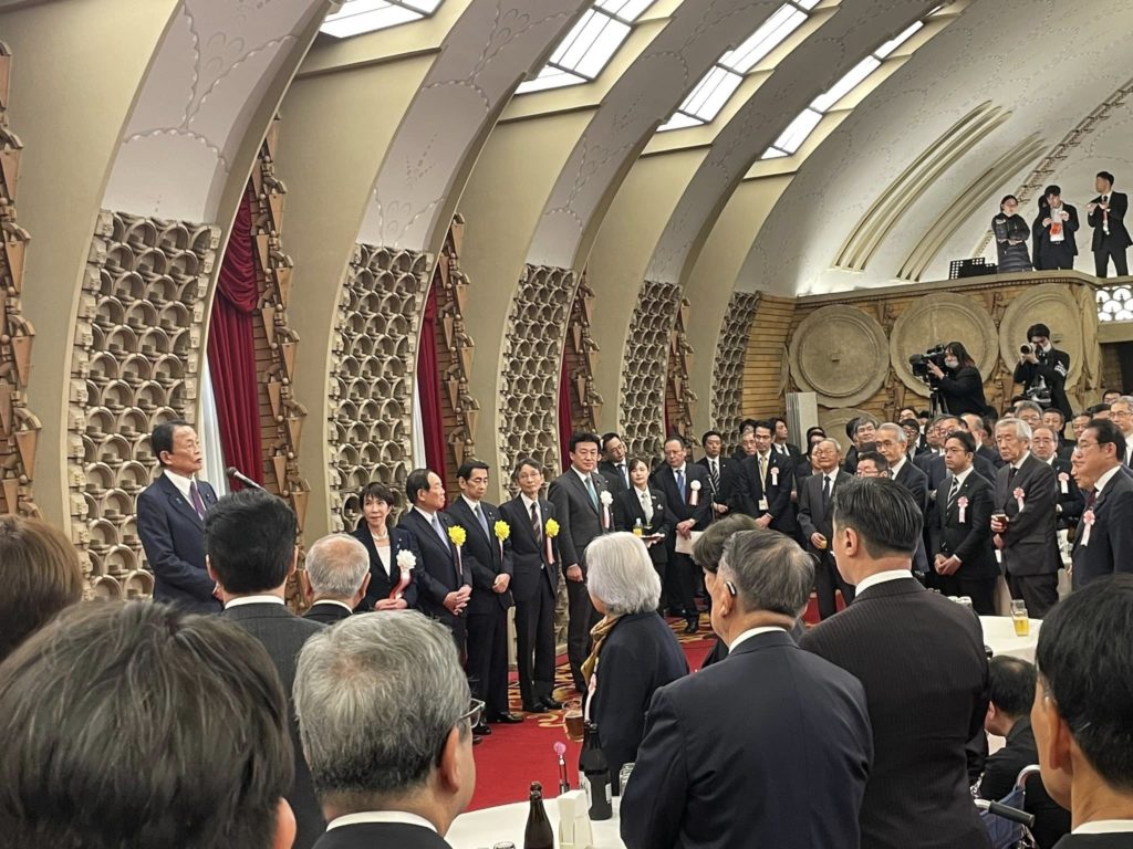 式典後の祝賀会には、歴代内閣総理大臣や官房長官、議長はじめ国会関係者など沢山のお客様が集いました。