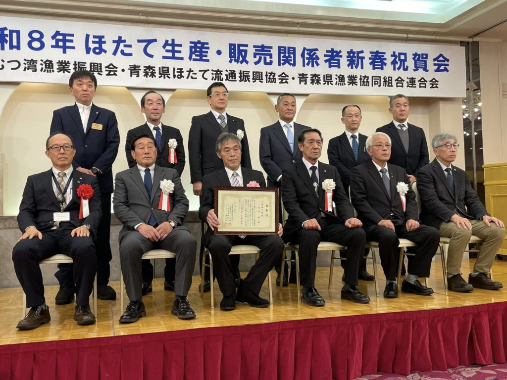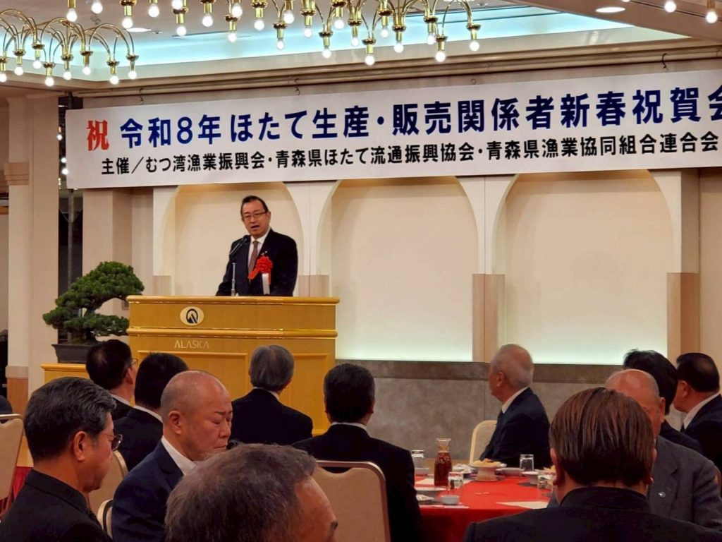 5日の夕方には、陸奥湾ホタテ漁業の生産・加工・販売にあたる皆様が一堂に介しての新年祝賀会があり、ホタテ漁業の再生へ向けた決意を申し上げました。
