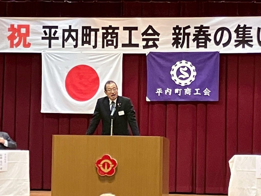 平内町商工会主催の新年祝賀会では、主力産業であるホタテ養殖再生、持続可能な農業生産、商工会の町活性化の取り組み支援などの決意を申し上げました。