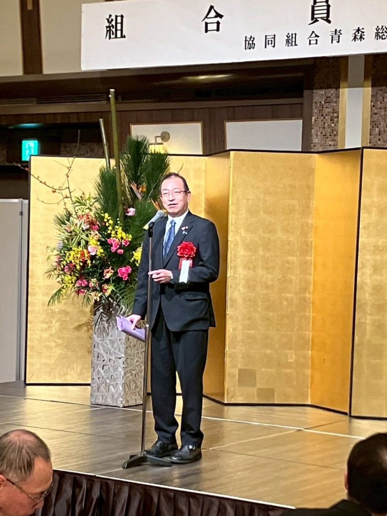 青森総合卸センターの新年祝賀会では、物流DX推進・働き方改革の見直し・国民の所得向上・更には市民生活に関わる雪対策などの決意を申し上げました。