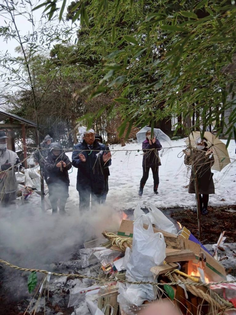 平内町神明宮のどんど祭では、歳男として氏子の歳男・歳女の皆様と共にどんど焼きの火入れをさせていただきました。