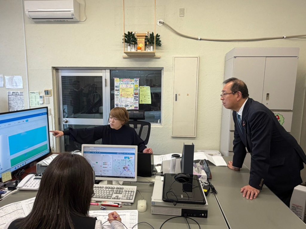 浪岡地区デマンド交通のマネジメントをしている事務所を訪問。この日の利用はのべ130人ほどで3台の車はフル稼働。利用がどんどん増えているとのこと。