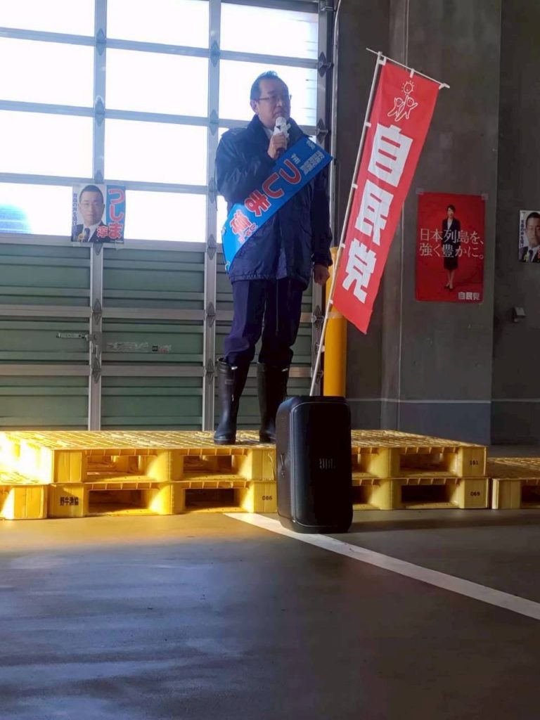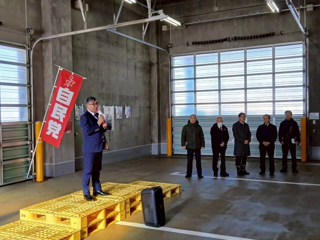 東通村では、野牛漁協の荷捌き施設をお借りして個人演説会を開催。